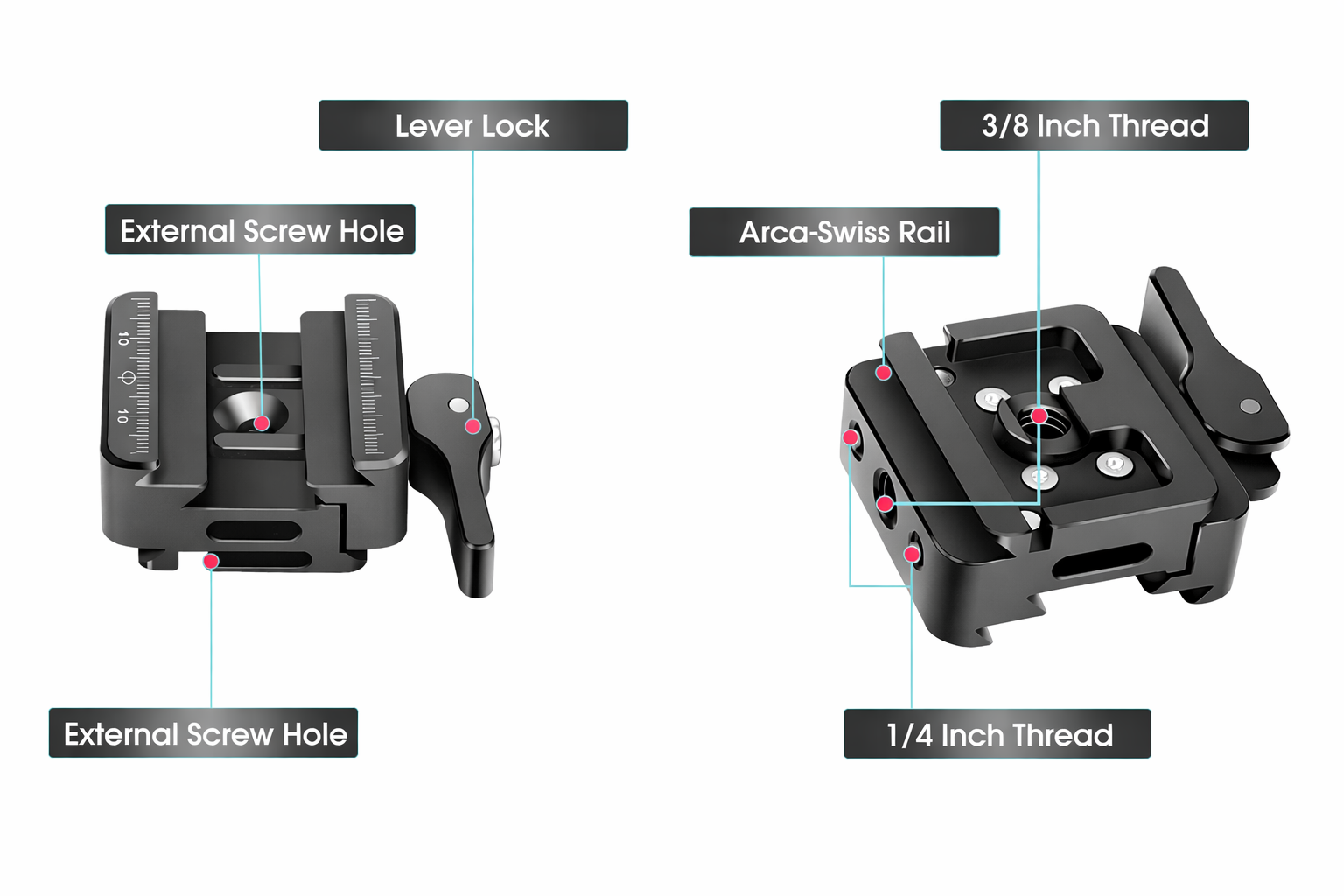 | Bottom Thread: | 3/8” & 1/4″ Thread / Arca-type Base |